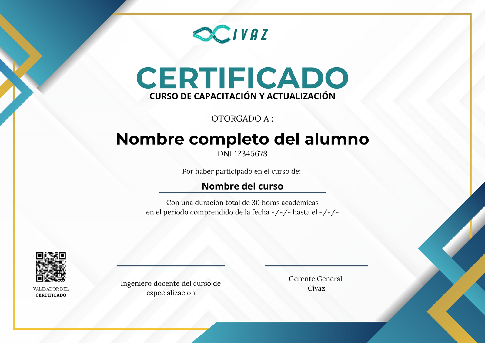 Al finalizar un curso, realizarás un examen y, al aprobarlo, recibirás un certificado gratuito firmado por nosotros, el cual podrás agregar a tu CV o LinkedIn. Este certificado podrá ser validado por cualquier persona o empresa que desee verificar su autenticidad
